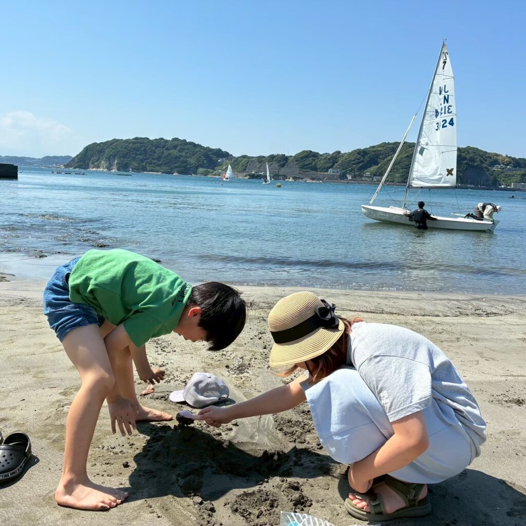 スクールの近くの公園や、何より、歩いてすぐのところに海岸があり、海遊びができます!海でのんびり過ごすのもよし。みんなで走り回ってもよし。貝殻拾って、モノづくりの材料にしてもいいですね。